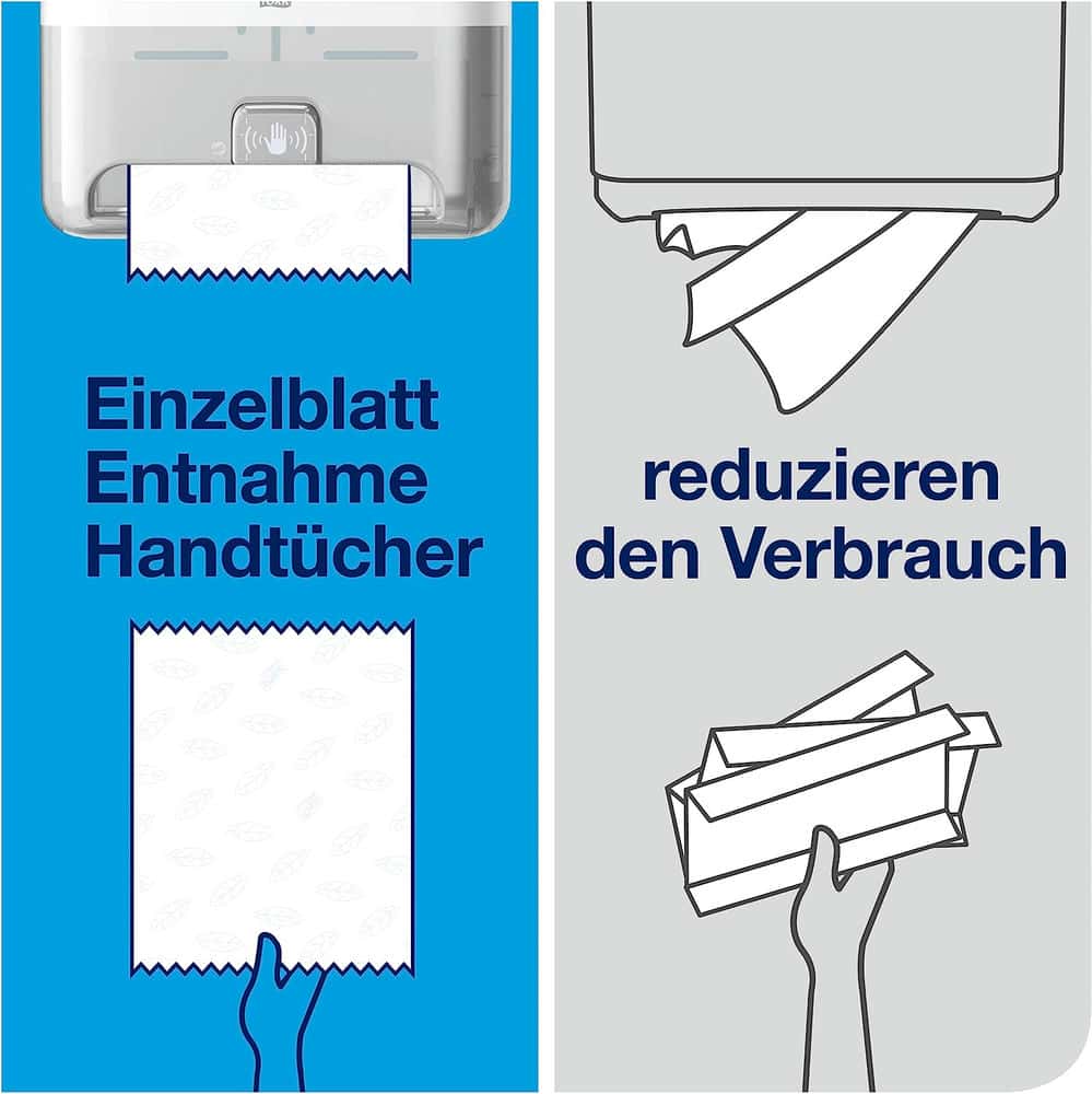 - Geringerer Verbrauch und mehr Hygiene durch Einzeltuchentnahme